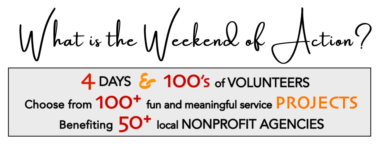 The Weekend of Action is our annual celebration of community, where we harness the power of volunteerism to make a BIG difference together! Join us November 6–9 for four days of fun, connection, and lasting impact.